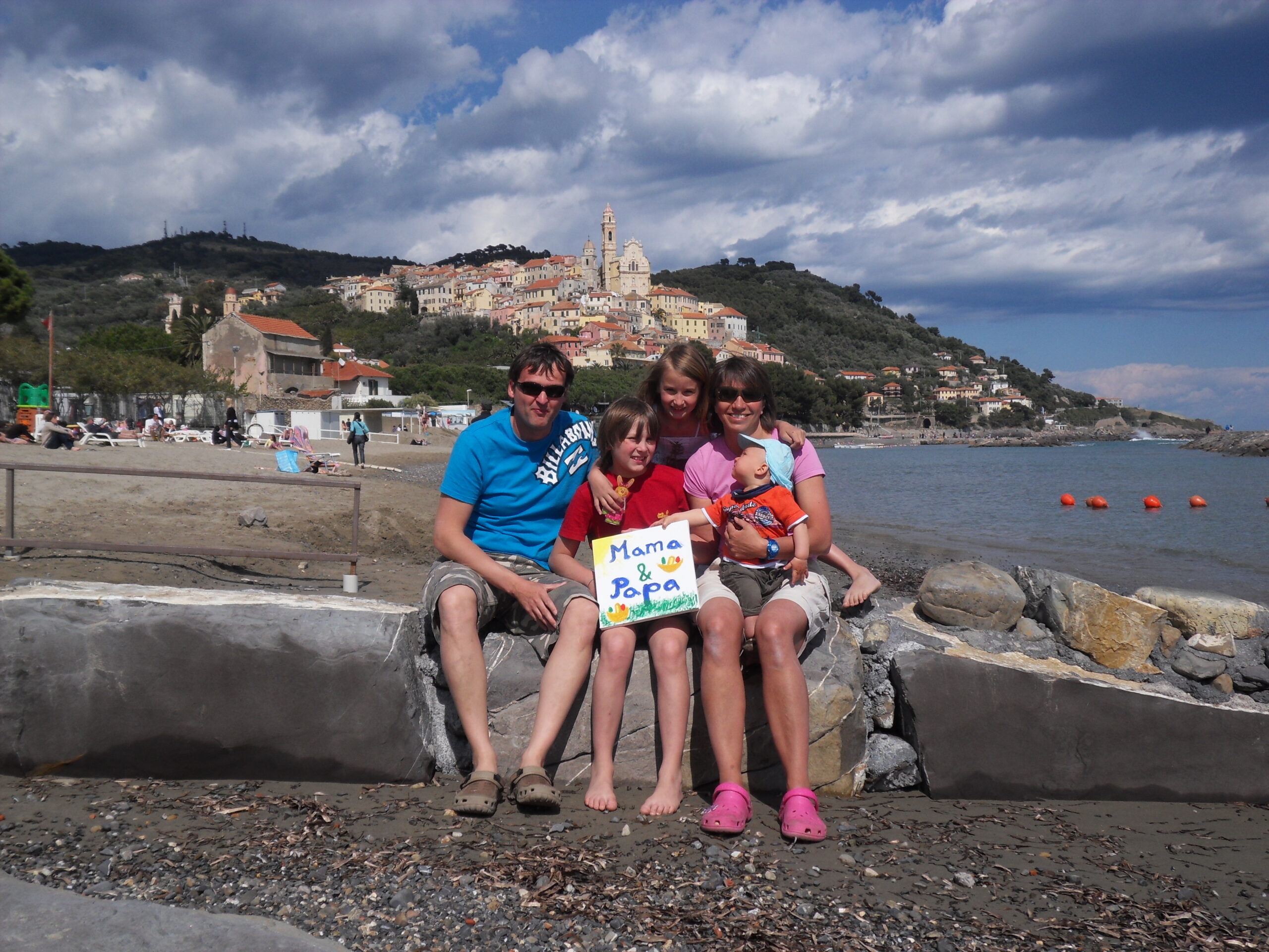 Wir wünschen frohe Ostern von der frühsommerlichen ligurischen Küste. Heute waren es über 20 Grad. Mats war im Meer baden. Tessa war im Pool. Außerdem haben wir Ostereier am Strand gesucht. Das fand der Italiener an sich etwas seltsam, uns hat es gefallen. Grüße Die Fünf