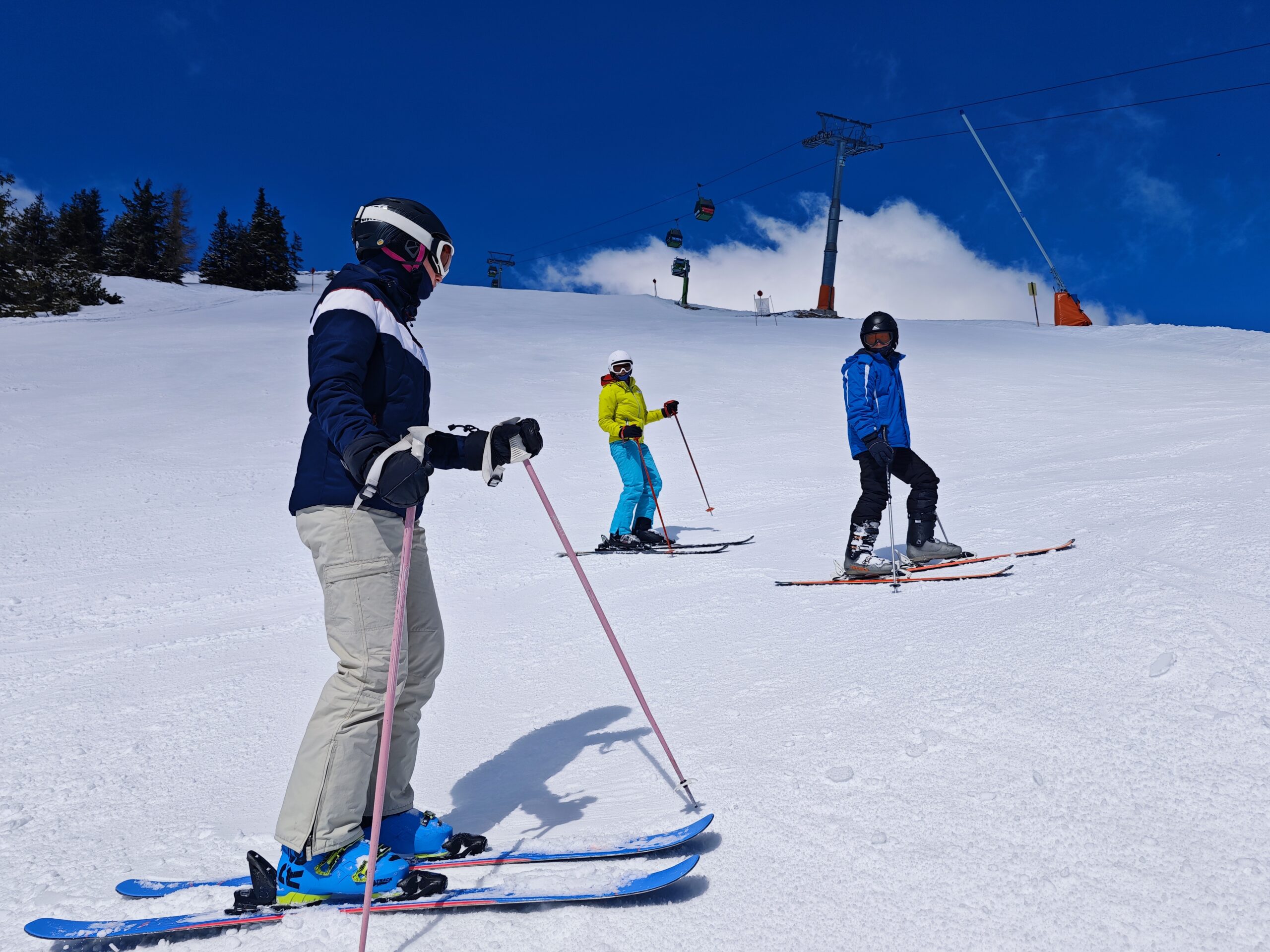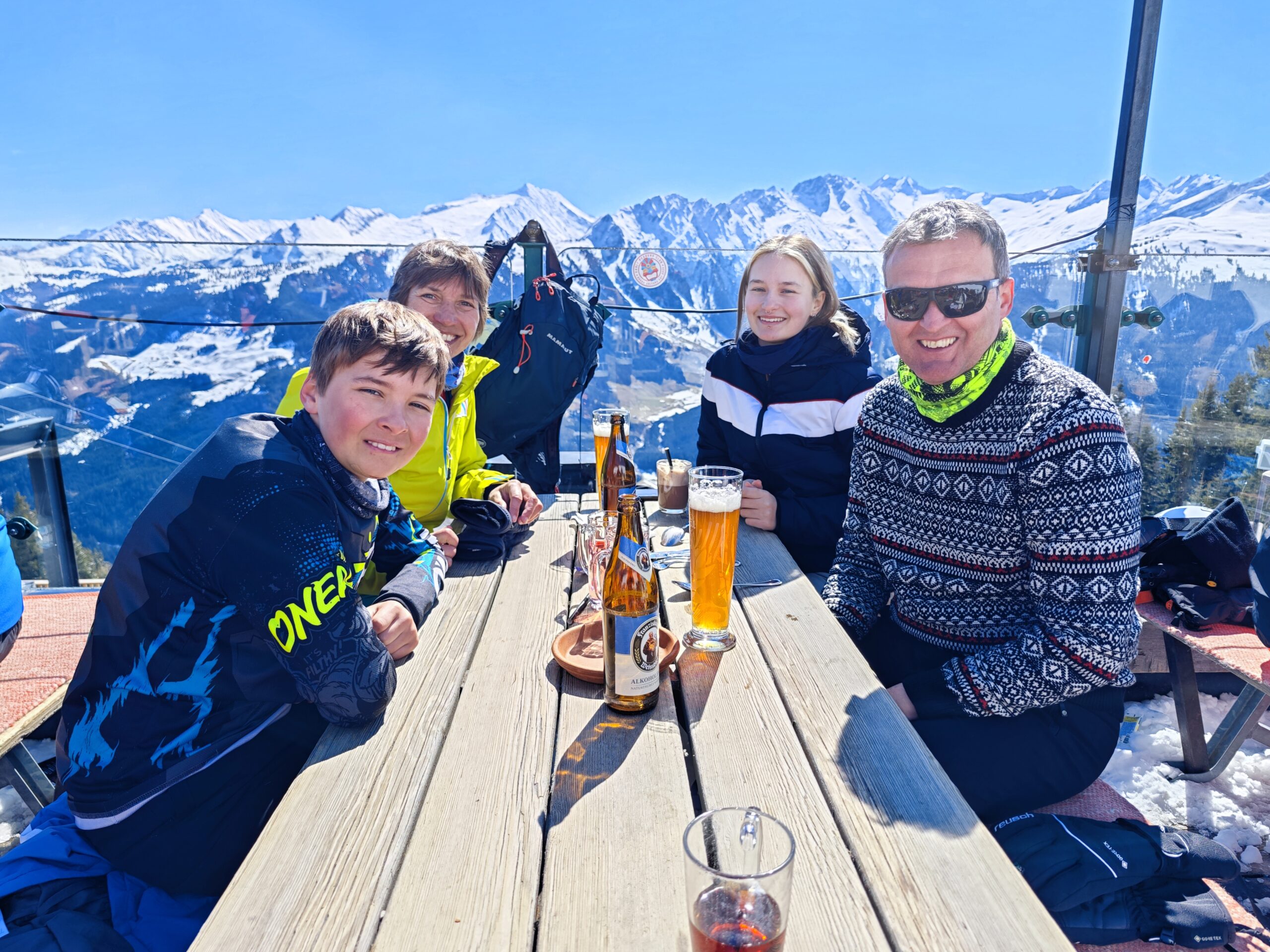 An unserem zweit letzten Skitagð hatten wir ideales Wetter und ideale Pisten. Ein idealer Tag zum Skifahren. Am Nachmittag war es zudem im Tal noch ausreichend warm, um im Sonnenschein in T-Shirt den Tag ausklingen zu lassen. Perfekt! Liebe Grüße Die Fünf
