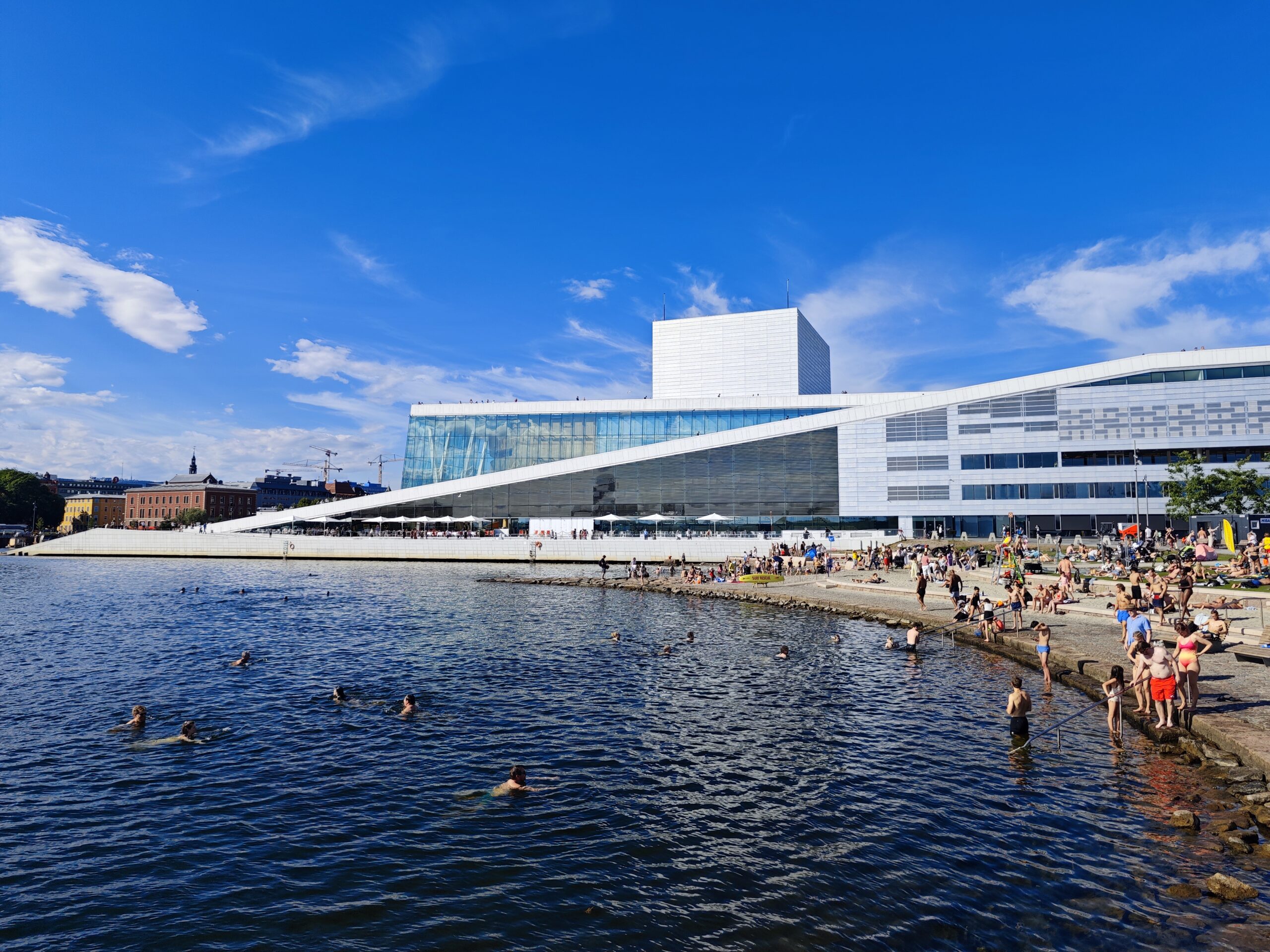 Auf der Fahrt Richtung Süden haben wir kurz Oslo besucht. Erst den Holmenkollen, ein sehr beeindruckendes Skisprung Stadion. Das sich da jemand herunter traut… In der Stadt haben wir bei schönstem Wetter zwischen der Oper und dem Münch Museum gebadet… zusammen mit halb Oslo. Sehr entspannt. Die Oper ist auch…