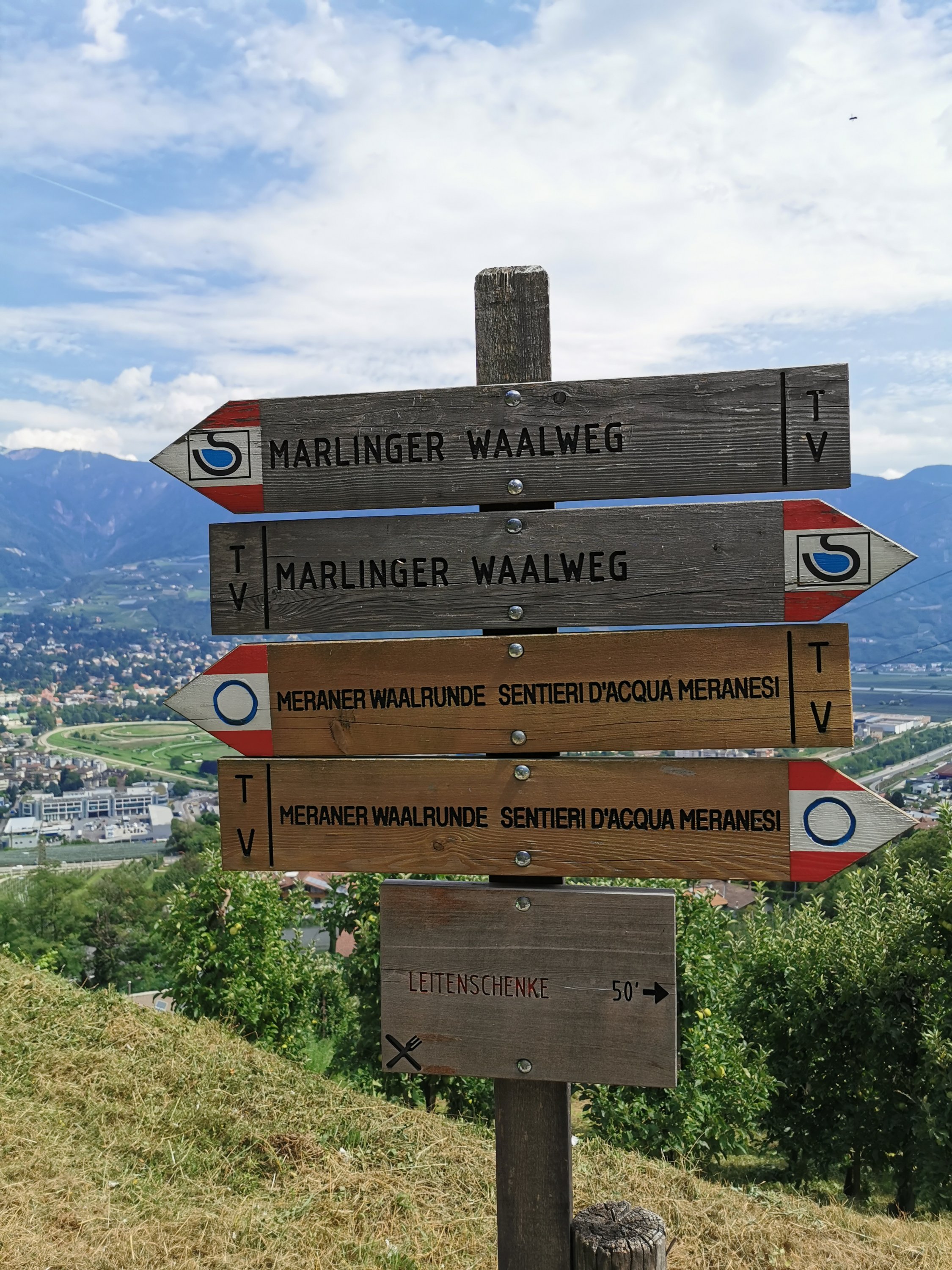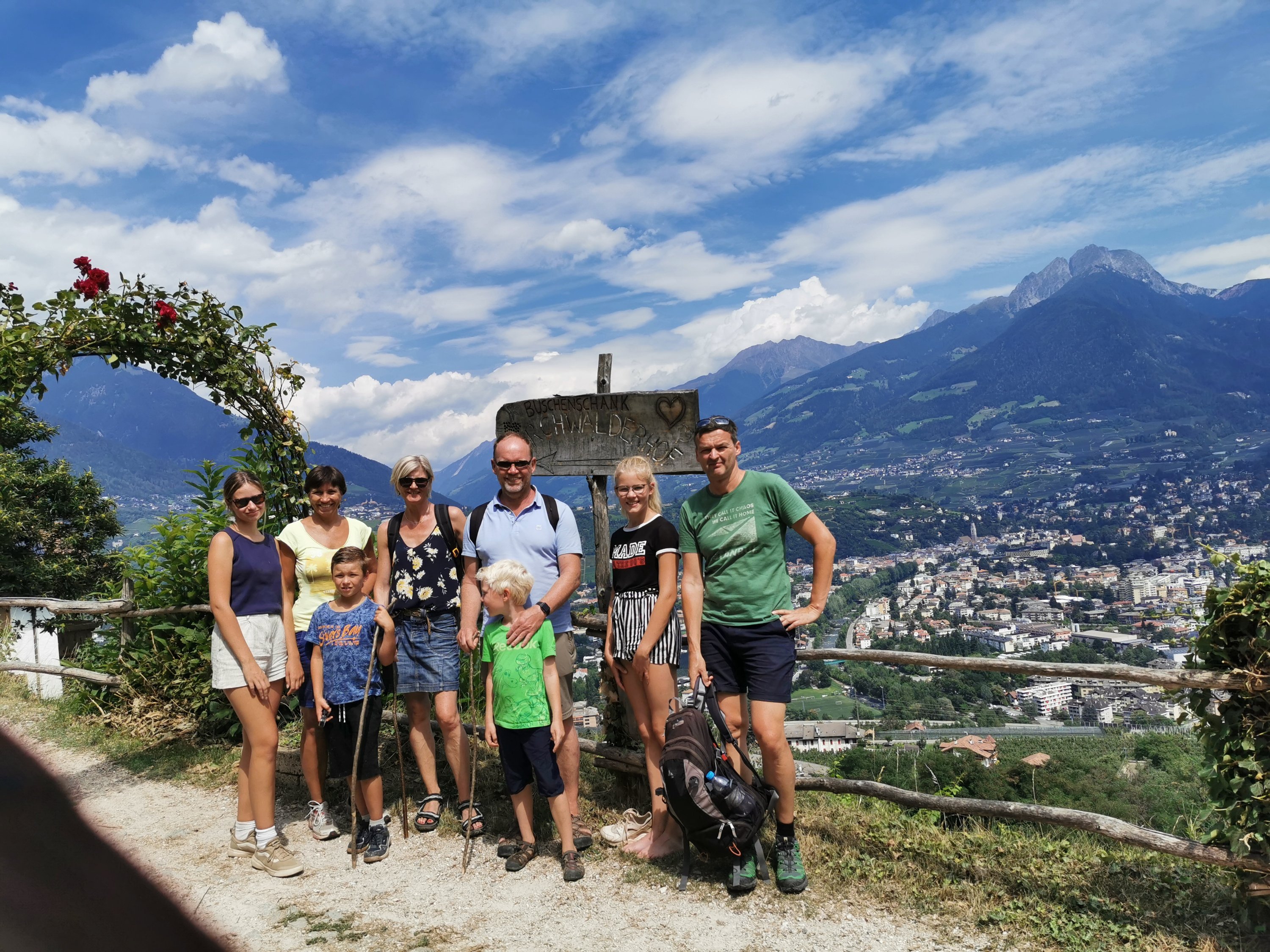 Am Freitag ging es los in Richtung Italien.Die erste Station: MeranIn Meran haben wir uns mit der Familie Hopster getroffen und zwei schöne Tage verbracht.Am ersten Tag ging es mit der Seilbahn Meran 2000 hoch auf den Berg.Dort sind wir einige Stunden gewandert und hatten eine schöne Jause auf der Hütten.Am nächsten Tag wurde weiter gewandert…am Waalweg entlang.Inklusive einer schönen Erfrischung im Waal.Ein perfekter Start…