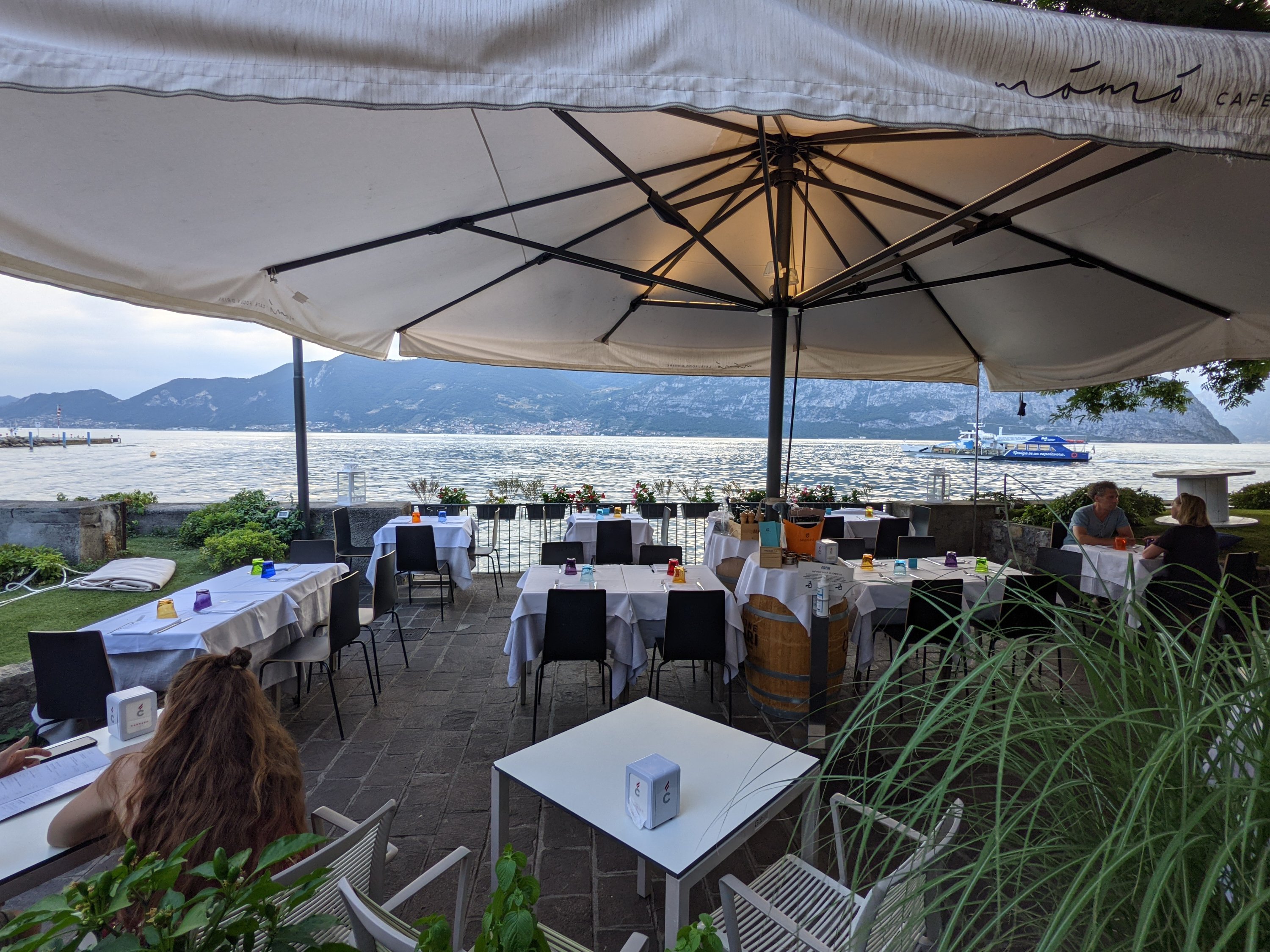 Am zweiten Abend wollten wir schön Essen gehen. Ein schönen Tisch am Seeufer hatten wir schon, die Vorspeise hat schon geschmeckt…