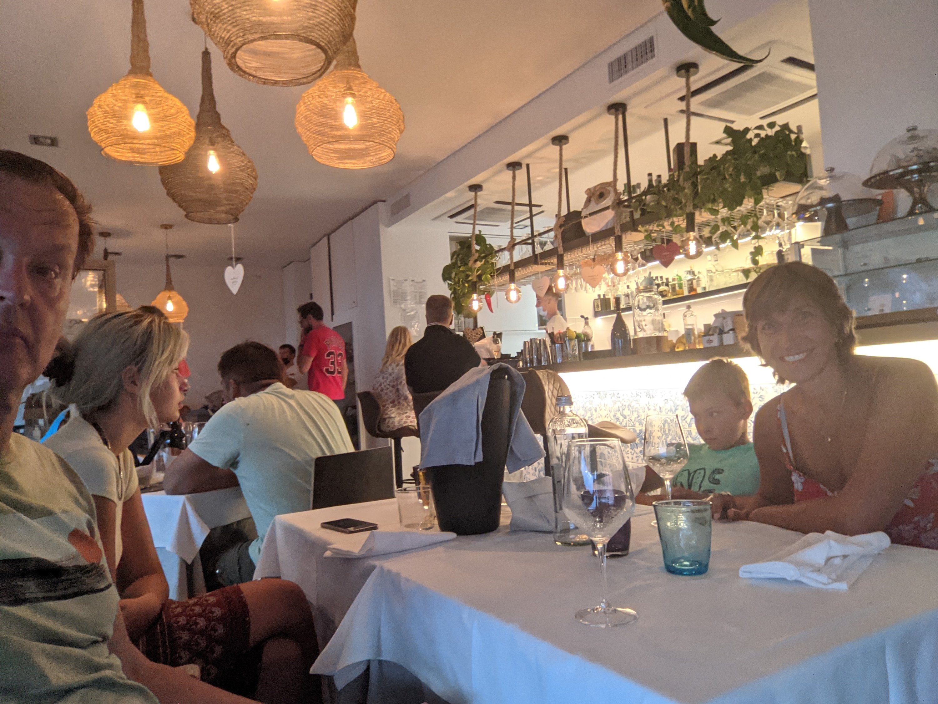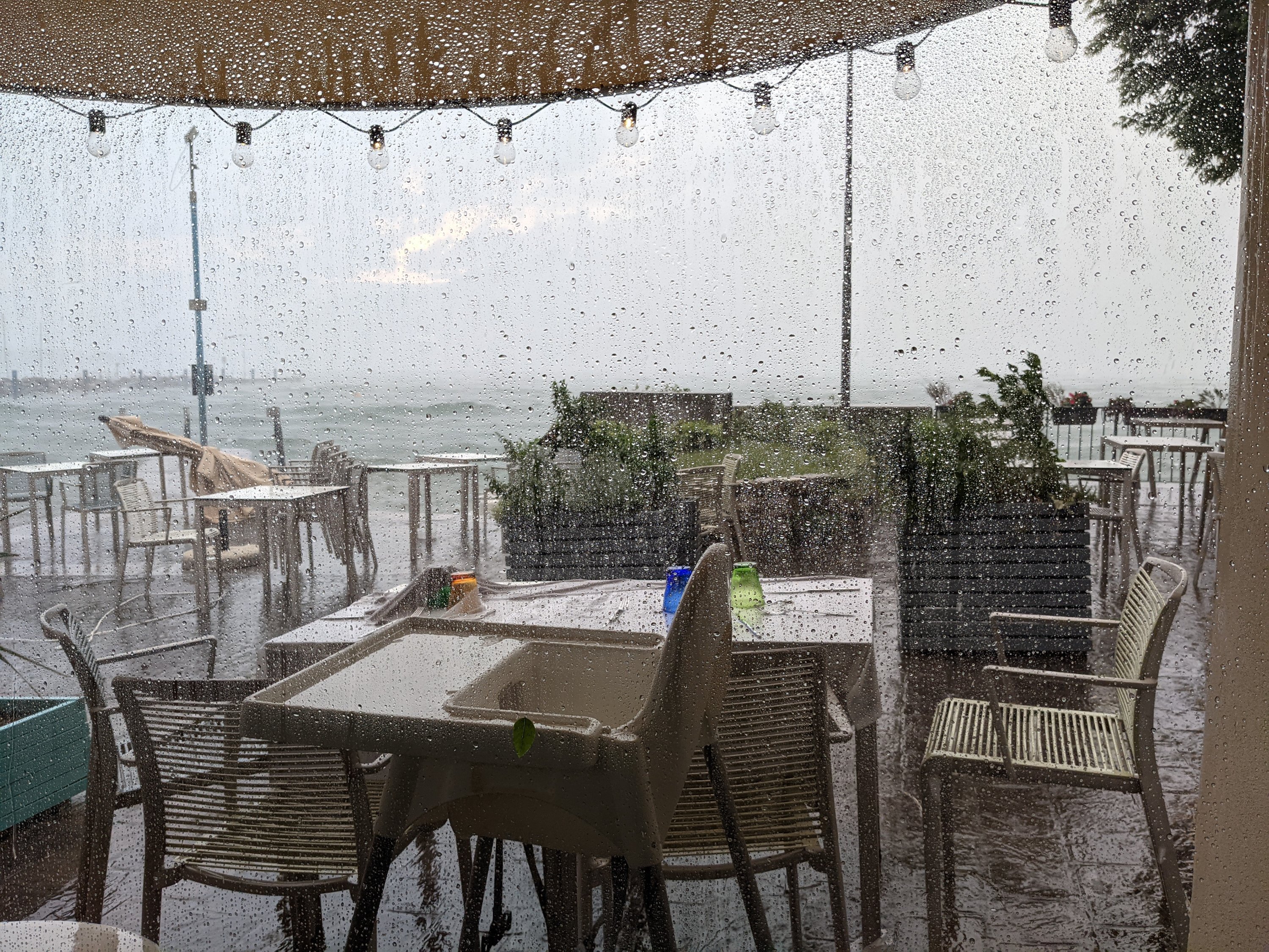 Dann zog ein enormes Gewitter auf. Die Sonnenschirme, Tische und Stühle sind weggeflogen und wir haben uns, nicht ganz Corona-konform ins Innere des Restaurants gerettet.